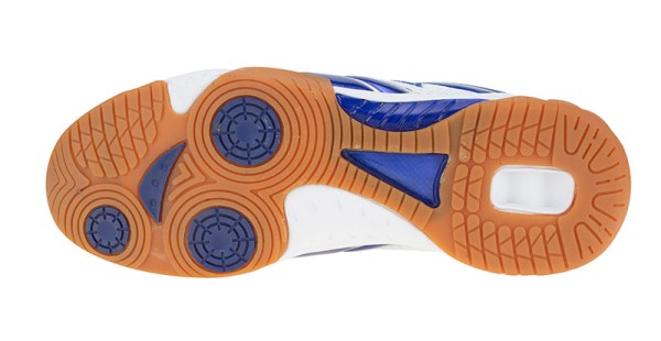 Usually, the Halls use a non-marking gum rubber sole for grip indoors. EVA foam or PU material is then added for cushioning and shock absorption. These combinations would provide both traction and foot support during high-speed games.