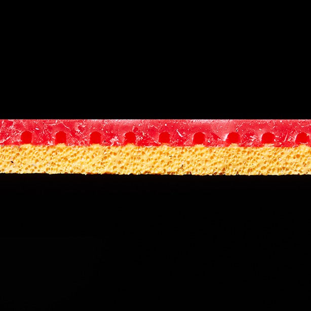 The mixture of 100% natural rubber in the upper layer results in increased grip and a longer impact time.