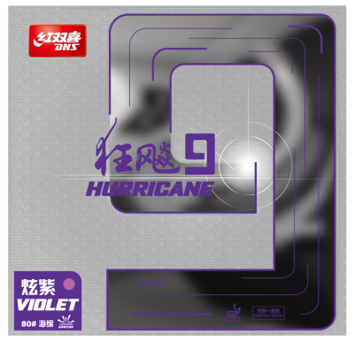 With the DHS Hurricane 9, each colour is supported by its own underlay and therefore has different playing characteristics. The Hurricane 9 in purple and green is equipped with a underlay with large pores, which is soft and very elastic by Chinese standards and therefore ideal for all-round attacking play.