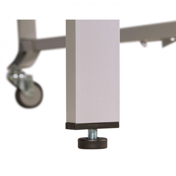 19mm top - Square tubular metal frame with 30x15mm, epoxy lacquered - Legs with 40x25mm steel pipe - 75mm rollers move the table without effort, two of them are equipped with a brake - Weight 90Kgs - Measures when folded: 1525x1580x340 mm - Delivery of the completely assembled table in special packaging - Patented security folding mechanism - Made in Germany - colour: blue