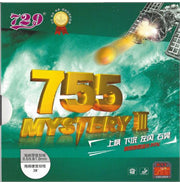 The new Mystery version of the 755 (full name: 755 Mystery III) is supported by a soft underlay (hardness about 38 degrees). The upper rubber is identical to that of the Friendship 755. Compared to the "normal" version of the 755 Mystery, it is more lively and slingshot stronger in offensive hits and slower in passive hits, so generally suitable for variable play. Also, the Friendship 755 Mystery is generally slightly faster than the 755, although it is a bit softer at the same time. As a result, the 755 Mystery is more dangerous to the opponent and more suited to a more active playing style than the 755.