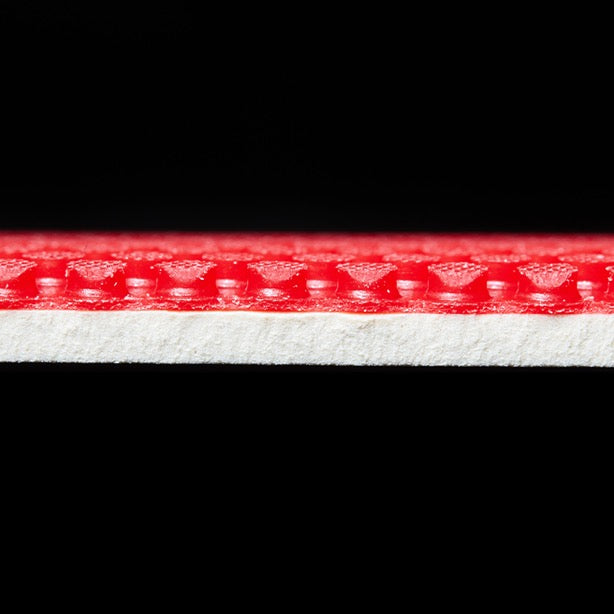 The grip of the surface is a key factor for maintaining top performance. After each training session, clean it with a rubber cleaner and cleaning sponge to preserve its tackiness. Always use a protective film afterwards to prevent dust and oxidation, ensuring maximum grip for your next match.