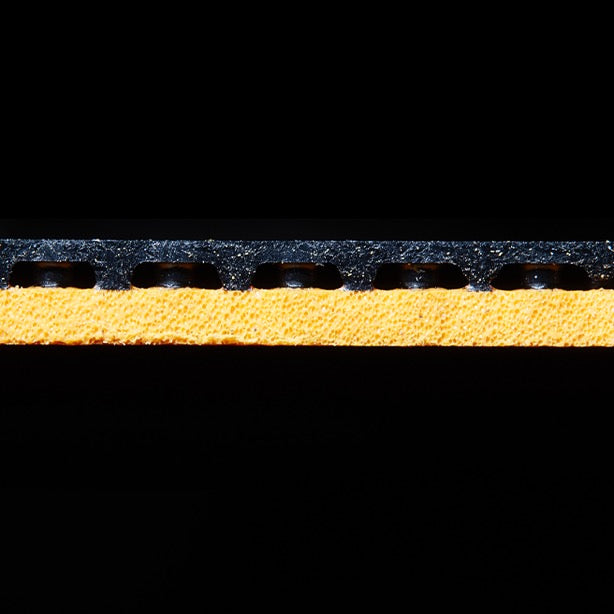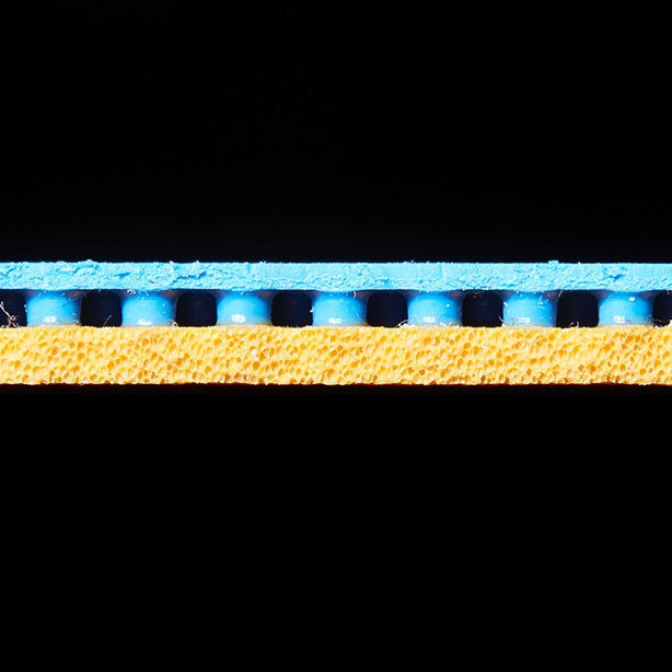 The grip of the surface is a key factor for maintaining top performance. After each training session, clean it with a rubber cleaner and cleaning sponge to preserve its tackiness. Always use a protective film afterwards to prevent dust and oxidation, ensuring maximum grip for your next match.
