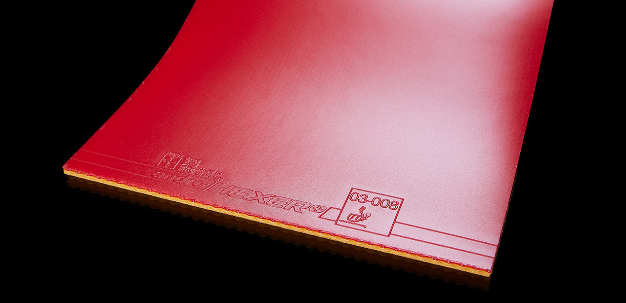 Die neue Rezeptur der oberen Schicht in Kombination mit der progressiven Noppengeometrie ergibt Hexer+ ein starker Trampolineffekt und ein angenehm flacher Ballrückprallwinkel.