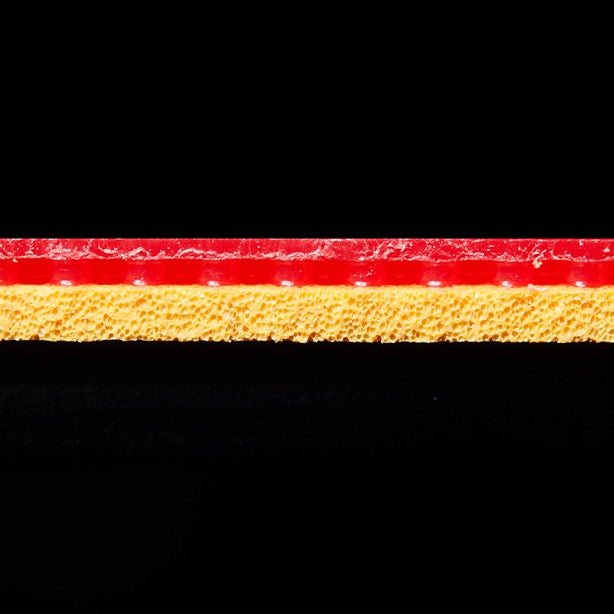 The grip of the surface is a key factor for maintaining top performance. After each training session, clean it with a rubber cleaner and cleaning sponge to preserve its tackiness. Always use a protective film afterwards to prevent dust and oxidation, ensuring maximum grip for your next match.
