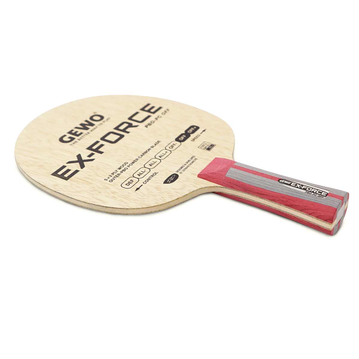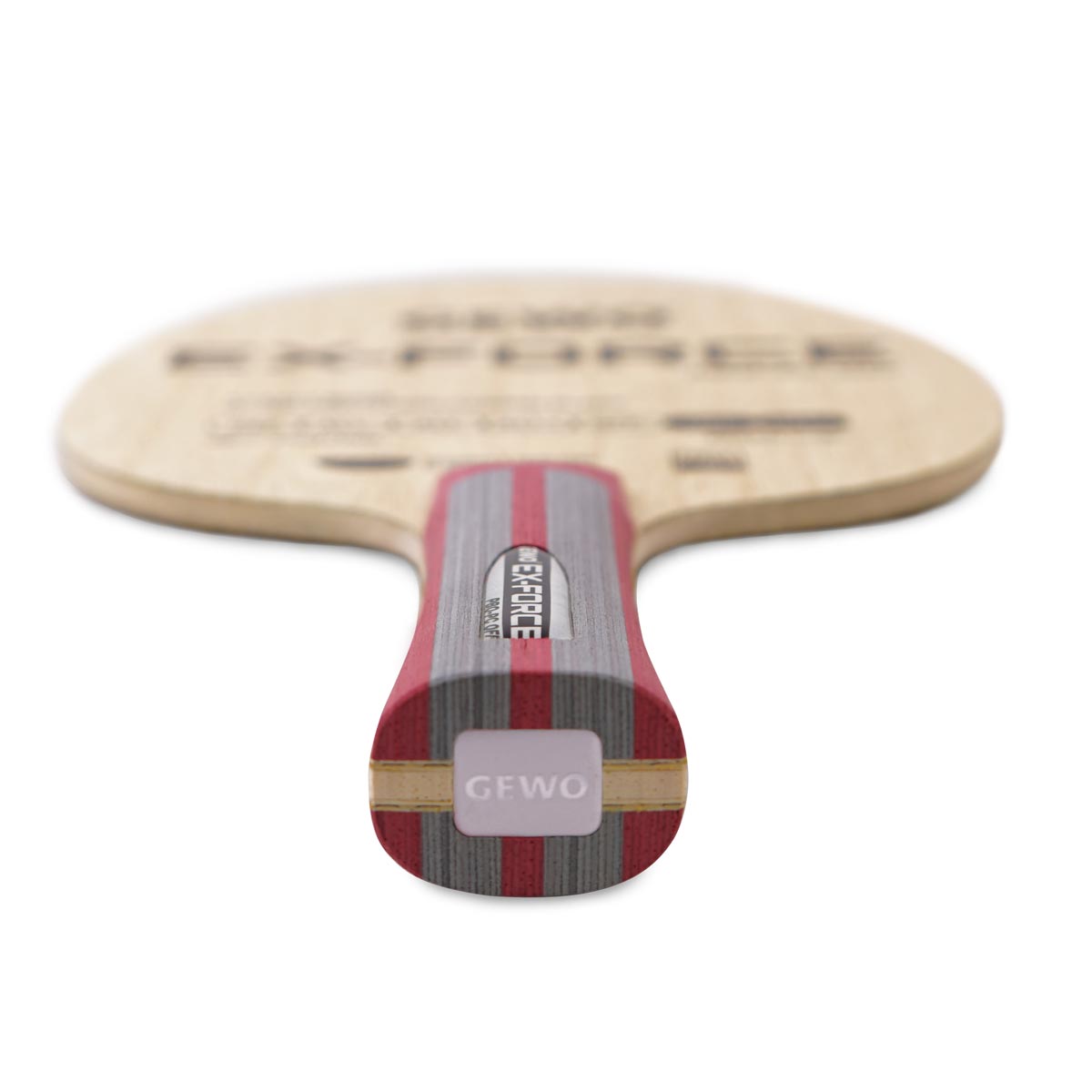 Wenn es um Härte, Präzision und Gefühl geht, ist unsere Ex-Force PBO-PC Off-Klinge einfach unübertroffen. Anders als bei der In-Force-Variante ist die Kunstfaser des Ex-Force PBO-PC Off nicht auf der Kernlage, sondern auf der feinen Limba-Außenlage platziert, was diese Klinge zu einer echten Angriffswaffe macht. Harte Topspins und Gegenspins gelingen dank der neuen PBO-PC-Faser problemlos, während die spezielle Klebetechnik dem gesamten Holzaufbau auch in Kombination mit harten Belägen die nötige Kontrolle verleiht. Eine perfekte Kombination aus Spin, Gefühl und Geschwindigkeit für variable, punktgewinnende Angriffe. Seien Sie der Dominator mit GEWO Ex-Force PBO-PC Off!