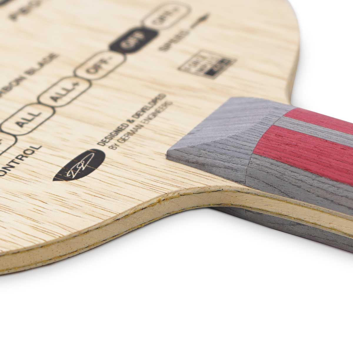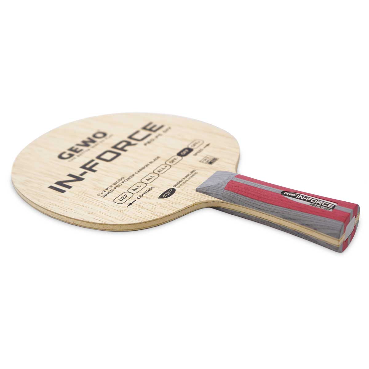 Eine Holzzusammensetzung, die Stabilität, Geschwindigkeit und Gefühl vereint, um ein ausgewogenes, ziemlich weiches Gefühl zu erzielen und gleichzeitig mehr als genug Kraftreserven für harte Schläge zu bieten. Zu schön um wahr zu sein? Nicht, wenn GE-WO In-Force PBO-PC ausgeschaltet ist! Die spezielle Klebetechnik gepaart mit der Härte der neuen PBO-PC-Faser sorgen für fantastische Spieleigenschaften hinsichtlich Beschleunigung und Kontrolle. Eine echte Neuheit im GEWO-Sortiment an High-End-Hölzern. Dank der feinen Limba-Außenlagen sorgt das Holz außerdem für einen längeren Ballkontakt und hervorragende Spinwerte.