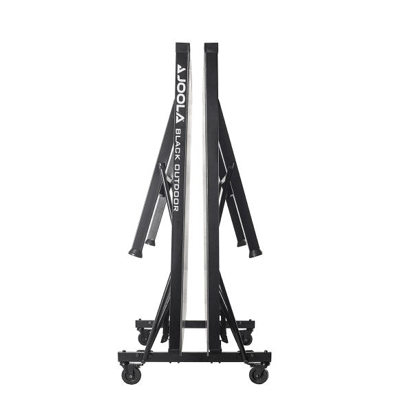 The JOOLA BLACK OUTDOOR is a one-piece outdoor table tennis table that not only stands out with its modern, black design, but also impresses with its exceptional mobility. When both halves of the table are folded, the table can be moved in one piece, which guarantees extremely easy use. The weather-resistant, 6 mm thick table top made of aluminum composite material is painted in a complex process and sets the standard in outdoor playing properties with its even ball bounce. The transport system with four 10 cm wheels provides excellent mobility while ensuring stability and safety. The table legs are adjustable in height, making it easy to level uneven floors. The two table halves can be folded separately, so that the table tennis table can easily be converted into solo play mode. A weatherproof table tennis net with a practical screw mechanism is included in the delivery. Weatherproof: Yes Double tilt protection: Yes Sheet thickness: 6 mm Storage space dimensions: 158 x 152 x 78 Gross weight (in kg): 66.5 The price mentioned does not include delivery costs.