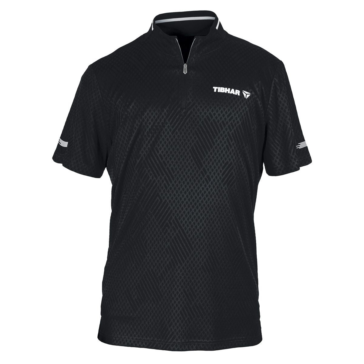 Very soft and flexible polyester fabric with a high-quality and elaborate fabric design ensures a particularly comfortable fit. Small stand-up collar with practical zipper. Integrated sweat absorption tape in the neck area. Ergonomic cut with side slit. Discreet print design on the sleeves. Patterns and structures incorporated into the fabric.