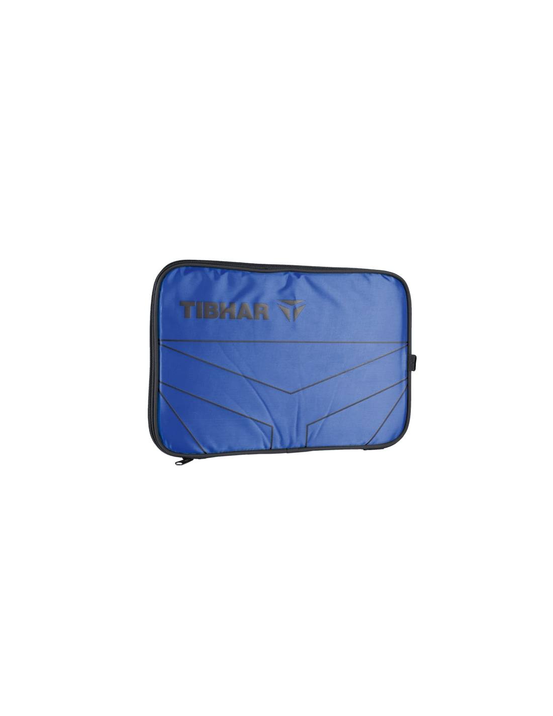 Einfache rechteckige Abdeckung Tibhar T für ein oder zwei Schläger mit vollständig zu öffnendem Reißverschluss.