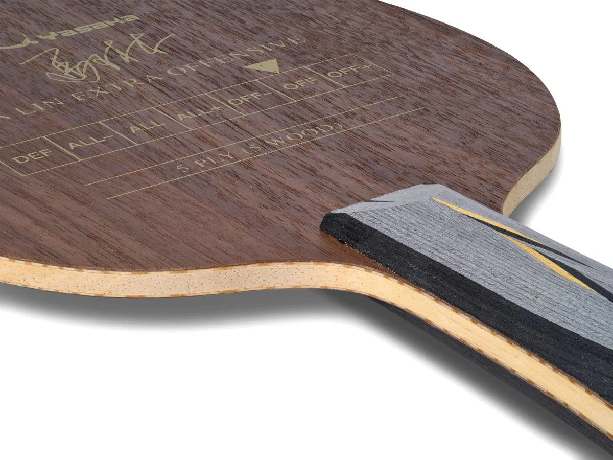 Ma Lin EXTRA OFFENSIVE ist ein schnelles 5-lagiges Holz, das in Zusammenarbeit mit Ma Lin entwickelt wurde. Die sehr harten Außenfurniere werden mit ausgewählten skandinavischen Kiefernfurnieren kombiniert, um der Klinge Kraft zu verleihen. Das dicke, mittelweiche Mittelfurnier verleiht dem Holz ein sehr gutes Ballgefühl, das von technischen Offensivspielern geschätzt wird.